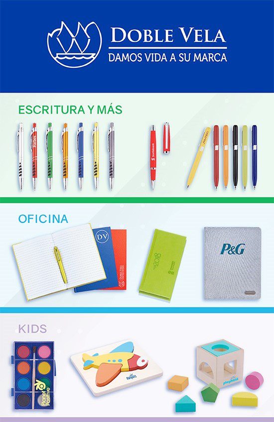 Grupo Doble Vela es un grupo comercial dedicado a la importación y venta de artículos promocionales de origen chino y nacionales en nuestro país desde hace 19 años, cuyo canal de ventas es a través de Distribuidores.